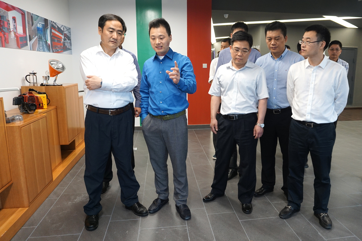 调研过程中,总裁应远首先代表公司对赵书记的莅临表示热烈的欢迎,并向赵书记等领导就斐络设计的产品设计、产业转化、人才引进等方面进行了详细汇报,赵书记也肯定了斐络设计三年来助推五金产业转型升级的作用。随后赵书记在总裁应远的陪同下参观了公司的样品展区,看到样品展区摆放着琳琅满目的设计成果时赵书记产生了浓厚兴趣。当赵书记走到一台休闲椅前询问这款产品设计的特别之处时,总裁应远从该产品概念设计到结构创新的设计过程和产品设计前后给企业带来的价值做了详细介绍,赵书记对意大利设计团队做出的创意构思给予点赞。他希望工业设计和工业制造加速融合发展,工业设计能真正有效地提升产品的附加值、产品的竞争力和市场占有率。